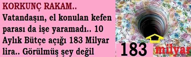 Bunu da hesaba katarsak ki katmalıyız çünkü bu durumda olağan dışı bir fark olarak fazla gerçekleşmiş olup Hazine beklentinin üzerinde kar payından gelir elde etmiştir. Yani bu yıl aktarılan 36 milyar TL'nin 18 milyarını da olağan dışı düşünürsek o tutarı da eklediğimizde gerçek bütçe açığı rakamına ulaşmış olacağız. Yılın 10 ayındaki gerçek bütçe açığı: 164,9 milyar TL + 18 milyar TL = 182,9 milyar TL olmaktadır.