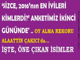Haber Sitemizin düzenlemiş olduğu ve büyük ilgi gören, “SİZCE, 2016 YILININ EN’leri ve EN İYİLERİ KİMLERDİ?” konulu, 10 Günlük OY kullanmalı Anketimiz ikinci gününde.